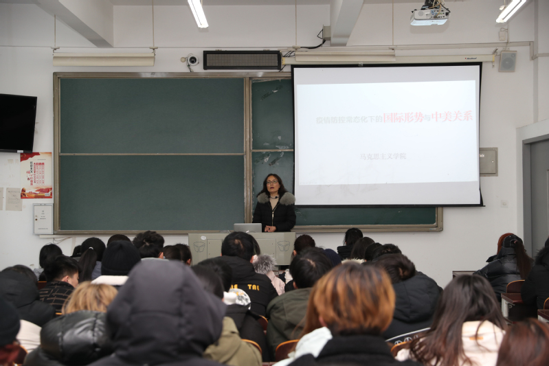 12月30日下午马克思主义学院《形势与政策》系列专题讲座在公共组团5104教室如期开展。校纪委书记夏燕萍艺术设计学院2020级学生带来了精彩生动的第三讲疫情防控常态化下的国际形势与中美关系