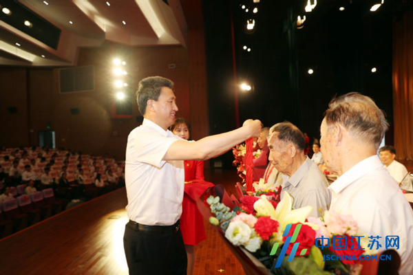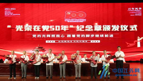 会上举行了“光荣在党50年”纪念章颁发仪式。青年学生向尊敬的老党员代表献花,校党委书记邵从清分别为党龄50年以上的老党员颁发了纪念章,并合影留念。大家向所有获得纪念章的党员同志表示热烈的祝贺和崇高的敬意。