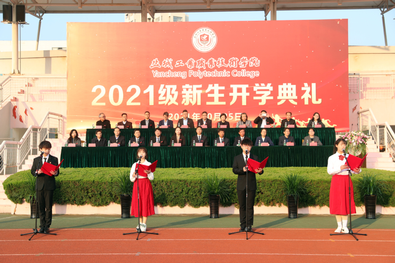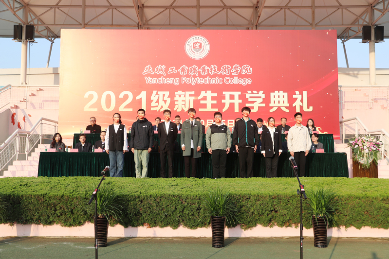 秋风送爽露微凉,金菊吐蕊果飘香。10月25日,学校在综合运动场举行2021级新生开学典礼。校党委书记邵从清,党委副书记张林龙,副校长孙卫芳、刘必千、蔺俊,纪委书记夏燕萍,相关职能部门和各二级学院主要负责人,新生辅导员、班主任,2021级全体新生参加开学典礼。刘必千主持典礼。