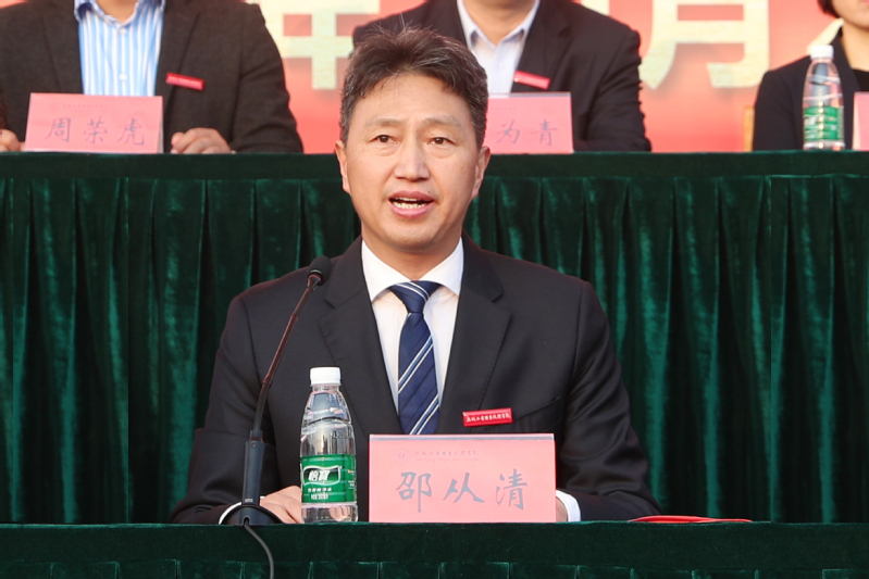 邵从清以《同心向党奋进时 青春激昂正启航》为主题致辞,对来自全国16个省的3400多名新同学表示了热烈欢迎,介绍了我校悠久的办学历史和优秀的办学成果。他对全体新同学提出三点希望:一要坚定理想信念,砥砺强国志气;二要锤炼高尚品格,锻造硬朗骨气;三要练就扎实本领,增强报国底气。