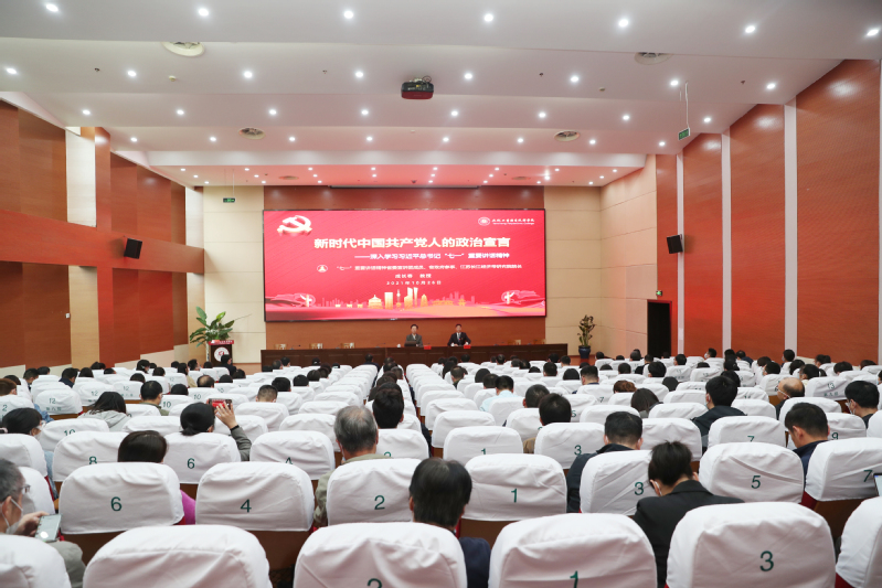 10月26日下午,我校在学术报告厅举行习近平总书记“七一”重要讲话精神宣讲报告会。学习贯彻习近平总书记“七一”重要讲话精神省委宣讲团成员、省政府参事、江苏长江经济带研究院院长成长春教授以《新时代中国共产党人的政治宣言——深入学习习近平总书记“七一”重要讲话》为题作宣讲报告。全体校领导、中层干部,党支部书记、辅导员,思政课教师、党务部门工作人员和学生代表到场聆听学习。校党委书记邵从清主持报告会。