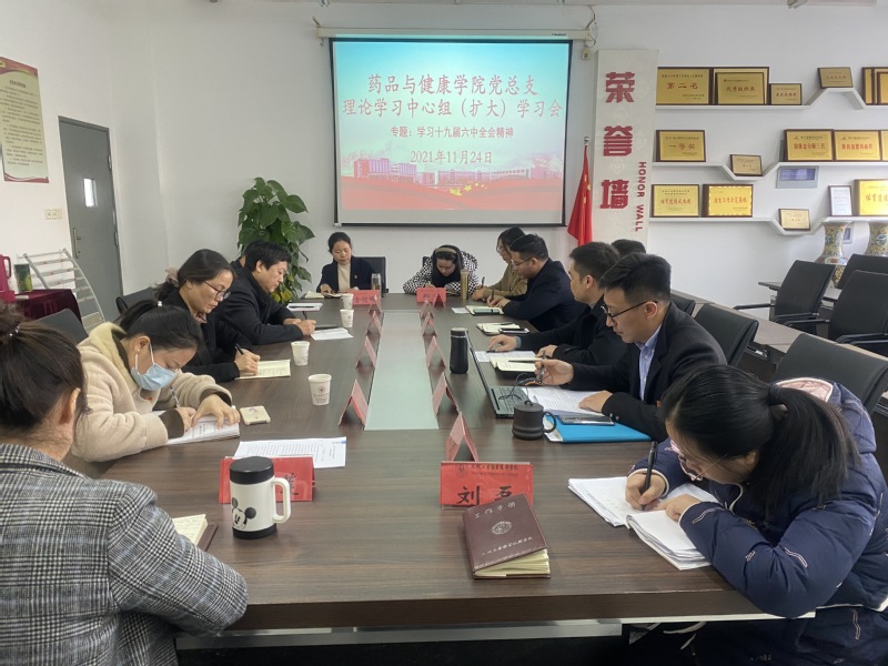 会上,药品与健康学院党总支副书记李亮领学了《中国共产党第十九届中央委员会第六次全体会议公报》。中心组成员陈健、金绍娣作了重点发言,其他成员也就学习体会作了交流。